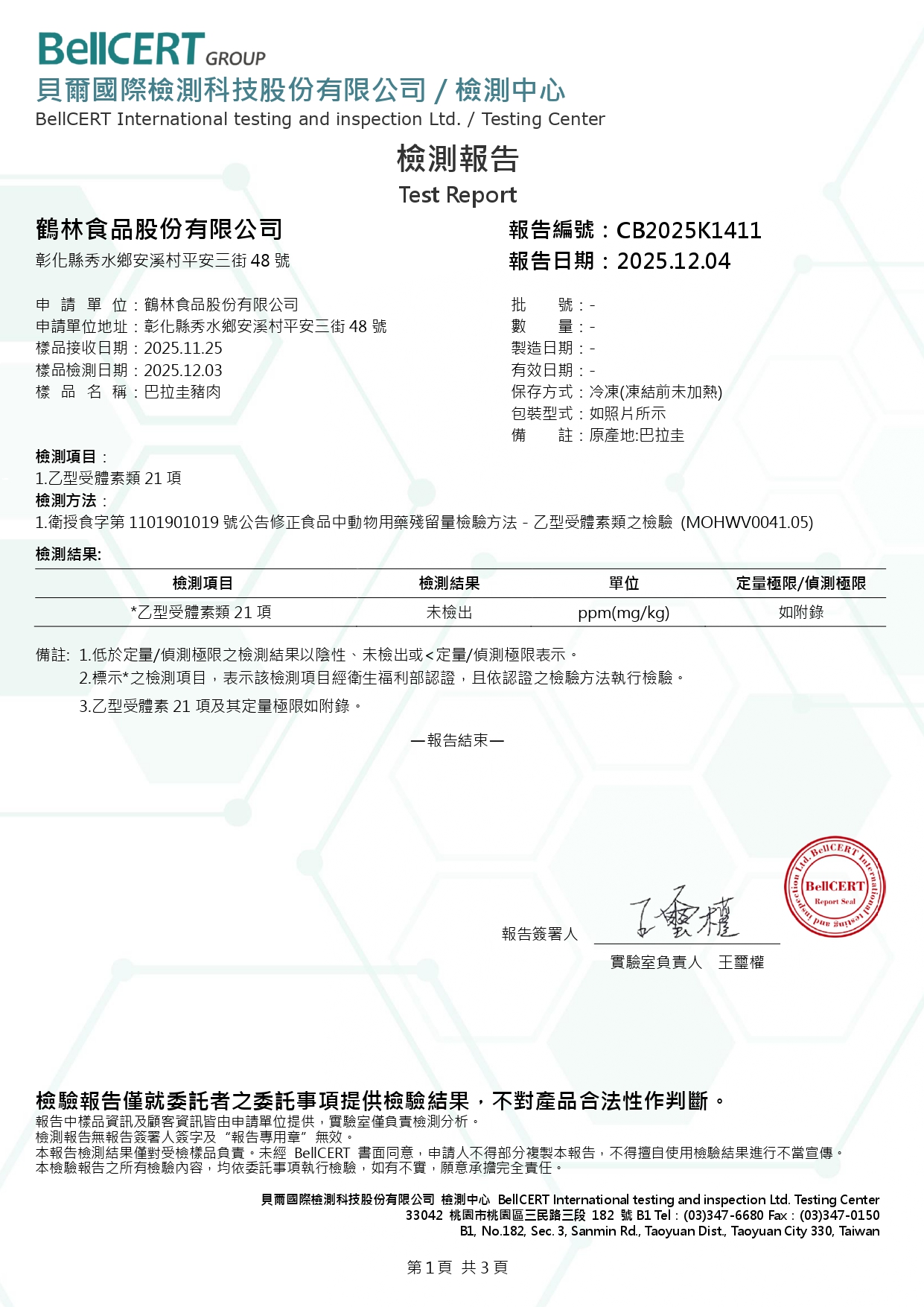 2025.12.03-巴拉圭梅花豬-乙型受體素類21項-未檢出